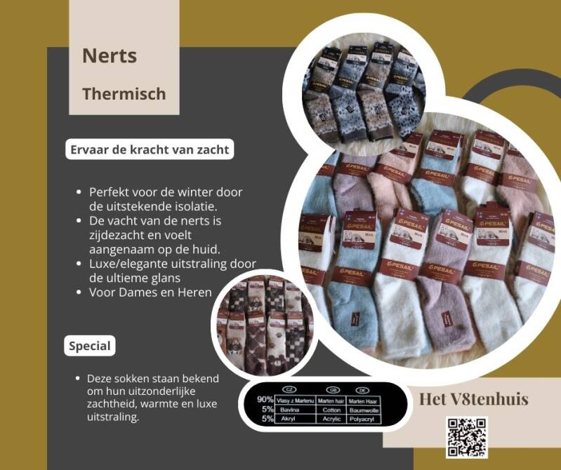 De nerts behoort tot de marterachtige roofdieren. De haren van de nerts die verwerkt zijn in sokken zijn van extreme zachtheid en zeldzaam.